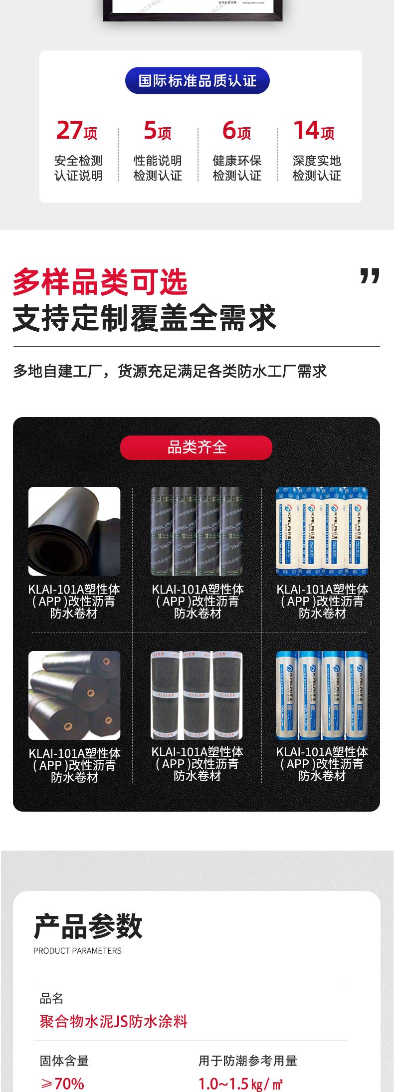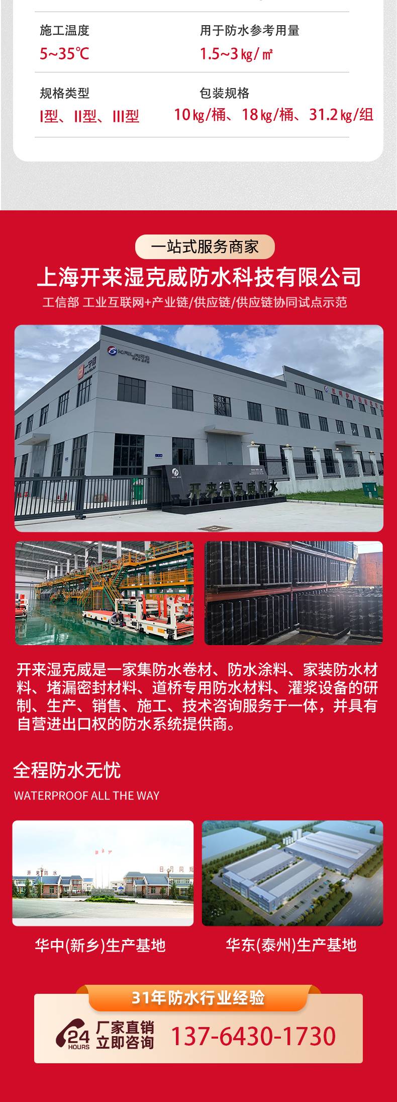 开来 聚合物水泥JS防水涂料柔韧性厨房卫生间墙地面防潮防渗涂料